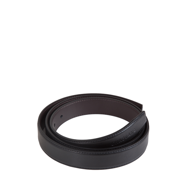 - Une ceinture en cuir de vachette lisse réversible (Une face noire et Une face marron)