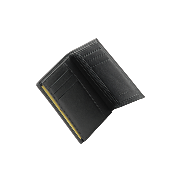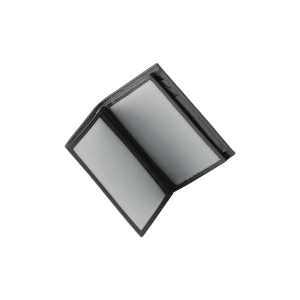 - Un portefeuille à la française : 10 x 12,5 x 2 cm composé de trois volets, six emplacements carte, d'une poche plaquée zippée, quatre emplacements multifonctions et de deux parois plastifiées.