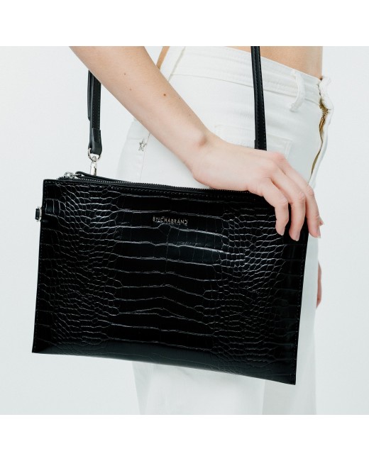 Pochette noire en synthétique effet croco