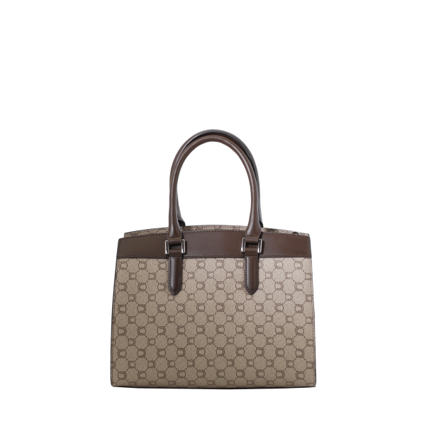 Porté main marron en toile siglée garnie cuir de vachette