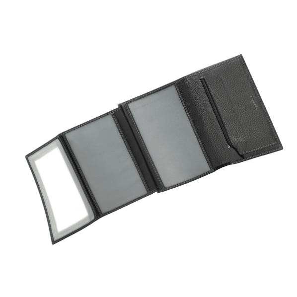 Portefeuille noir en cuir de vachette grainé