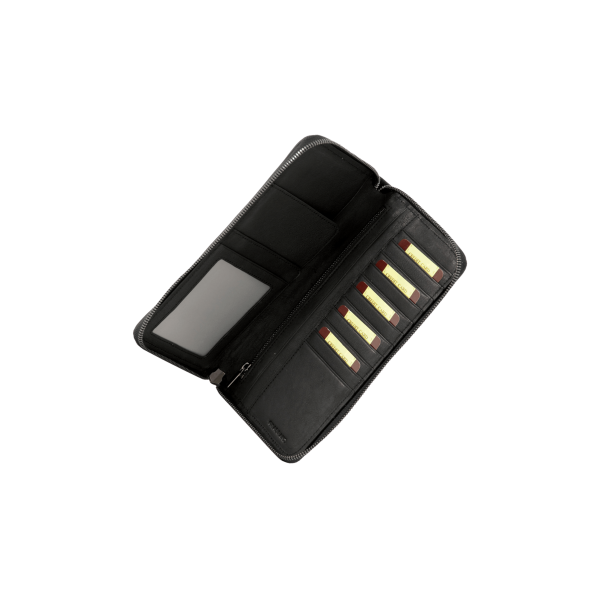 Grand portefeuille noir en toile garnie cuir
