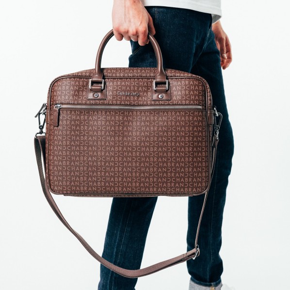 Porte-documents marron en synthétique siglé