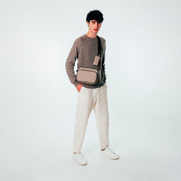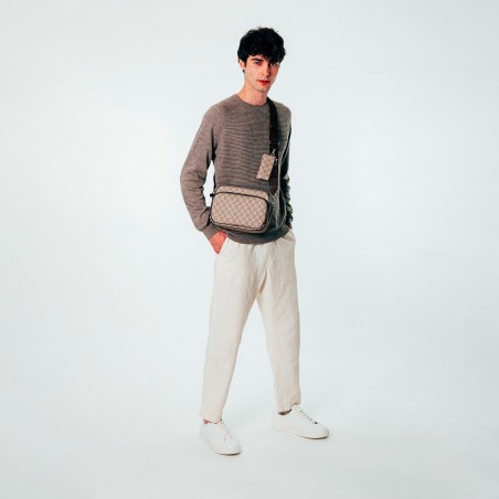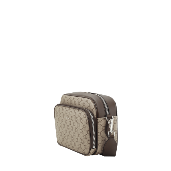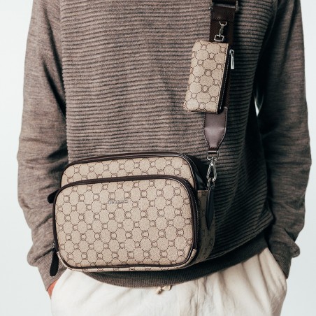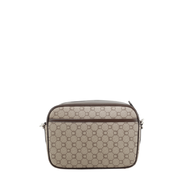 Mini sacoche marron en toile enduite siglée garnie cuir