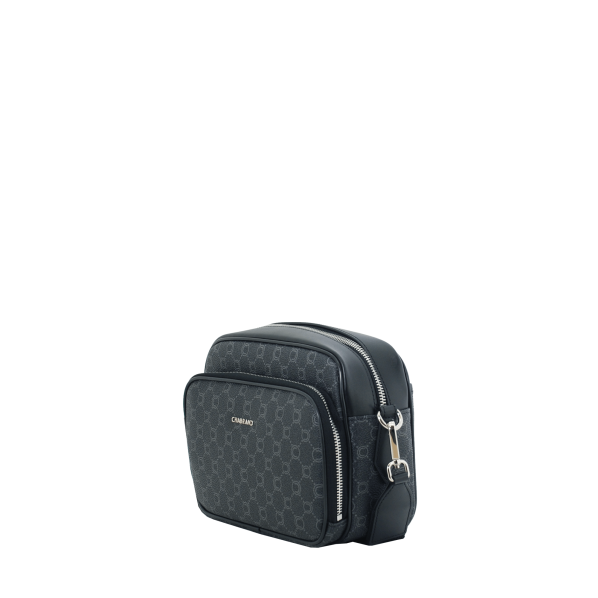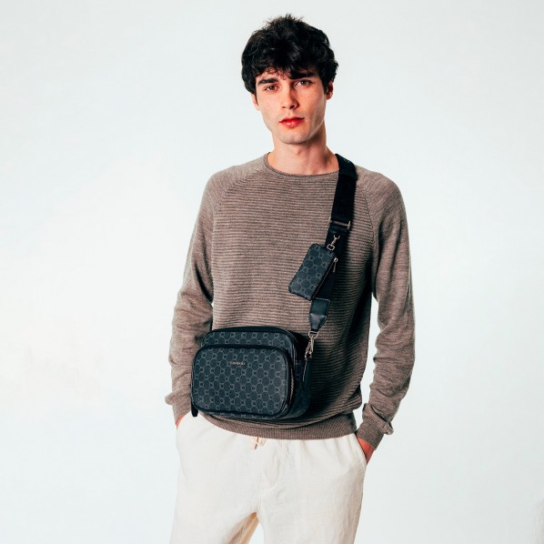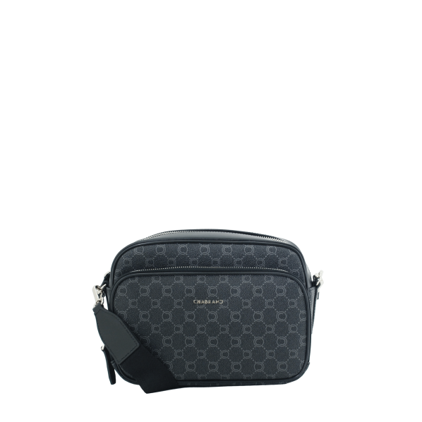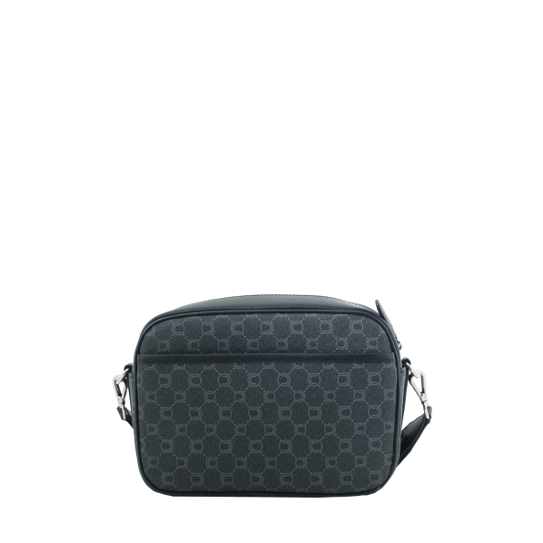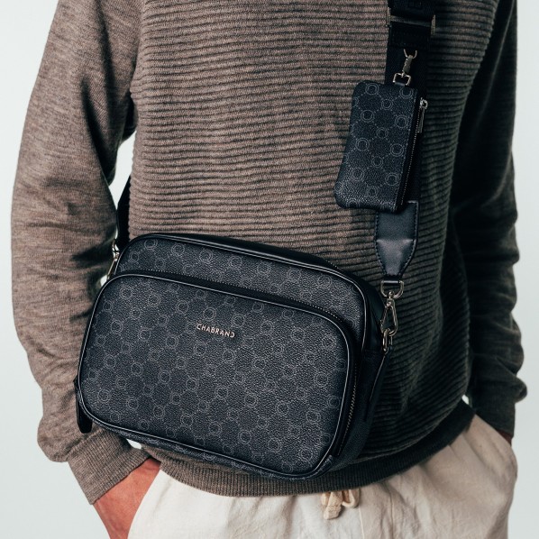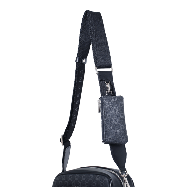 Mini sacoche noire en toile enduite siglée garnie cuir