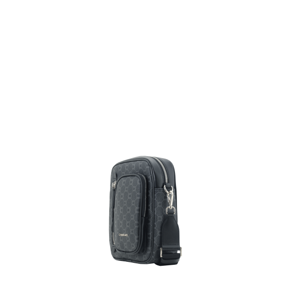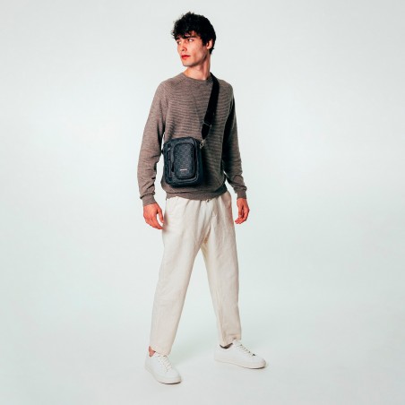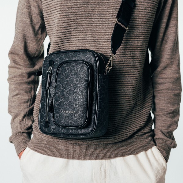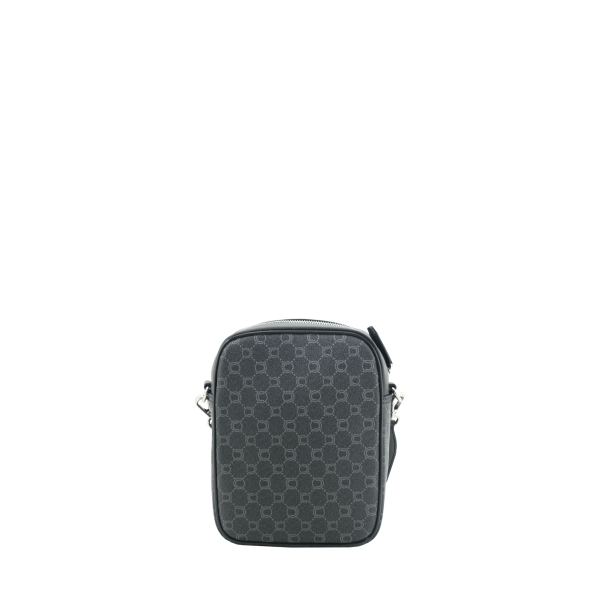 Mini-sacoche noire en toile enduite siglée garnie cuir