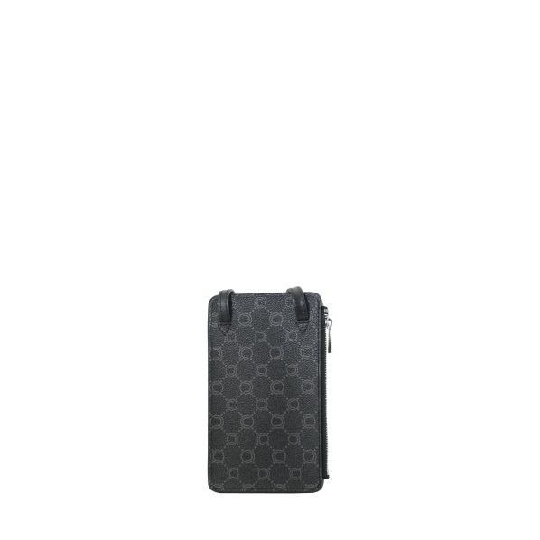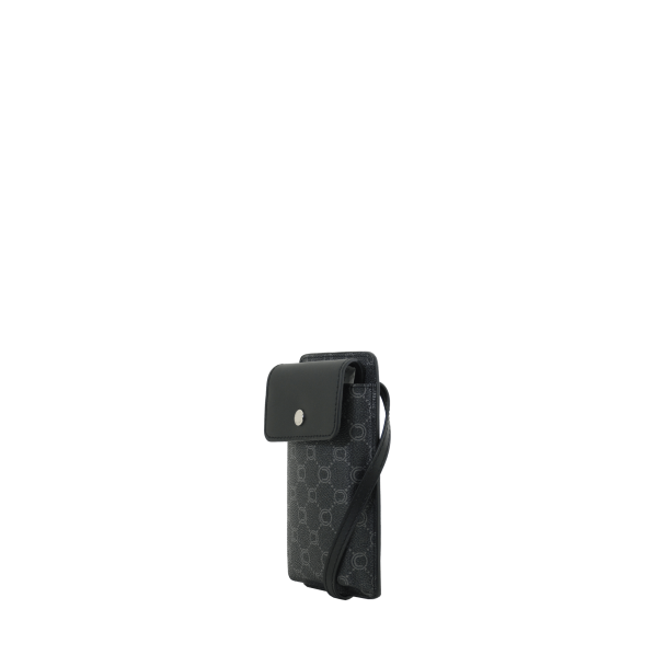 Pochette pour téléphone noire en toile enduite siglée garnie cuir