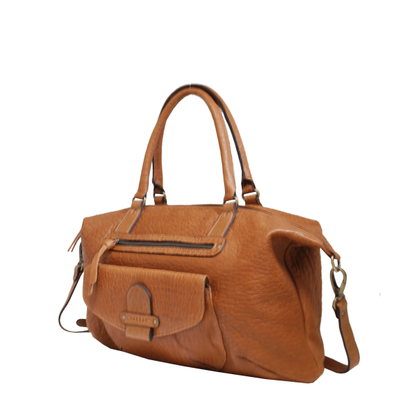 - Une poche plaquée zippée, et une poche à soufflet fermé par un rabat à bouton pression, sur l'extérieur avant.