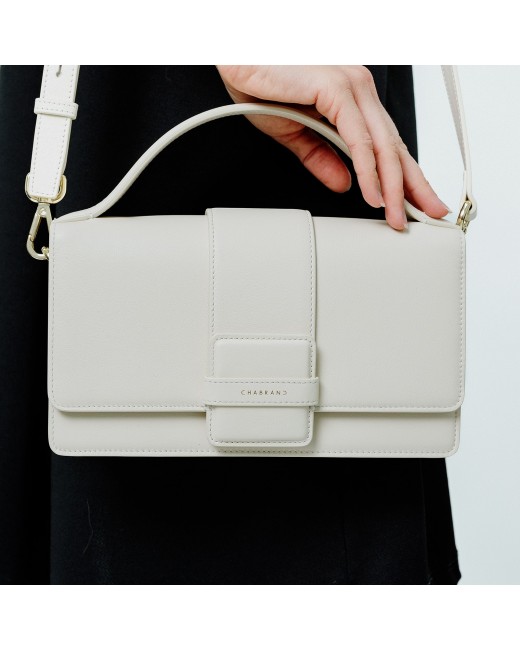 Porté main écru en cuir de vachette lisse