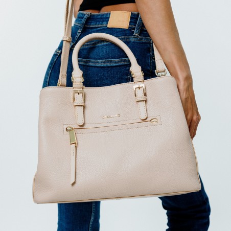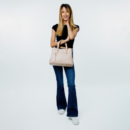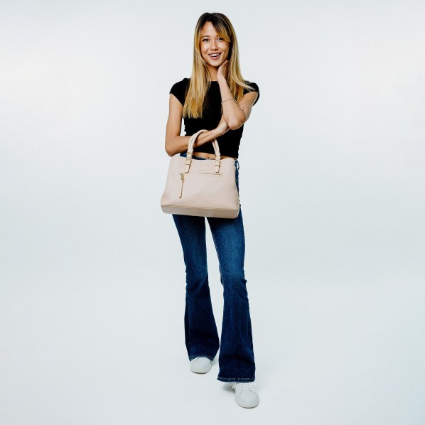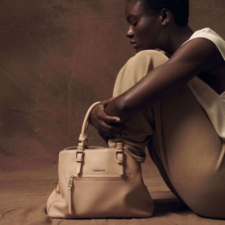 Porté main rose en cuir de vachette grainé