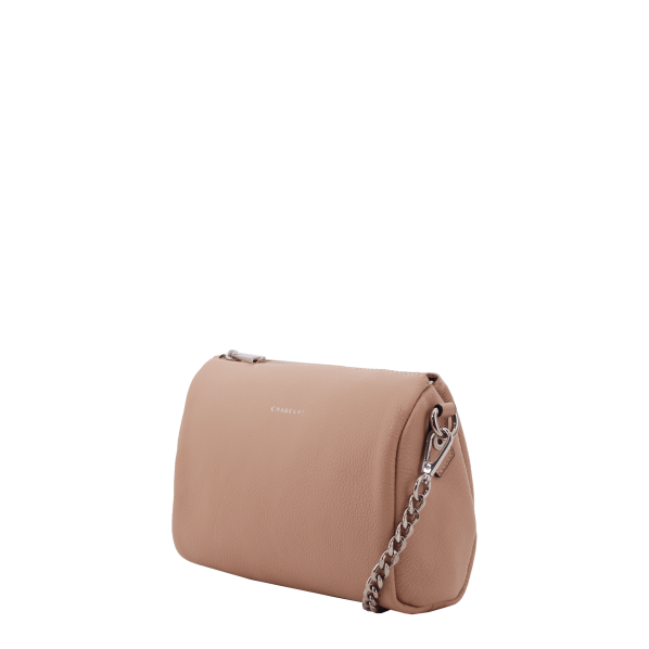 Porté travers rose poudré en cuir de vachette grainé
