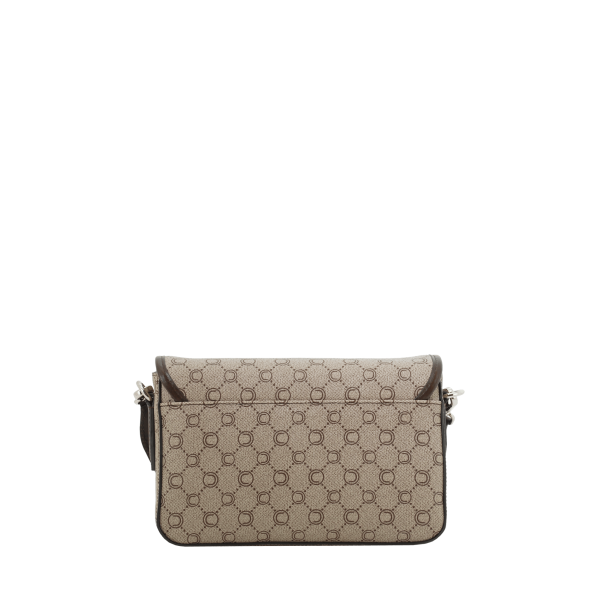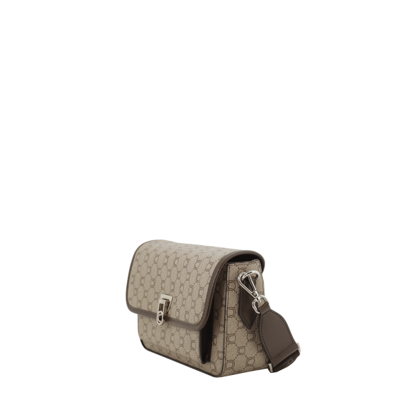 Porté travers marron en toile siglée garni cuir de vachette lisse