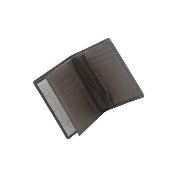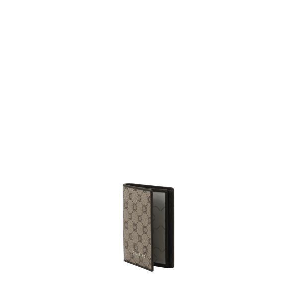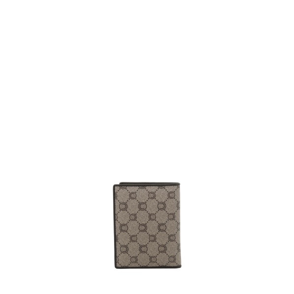 Portefeuille à la française marron en toile enduite siglée garnie cuir