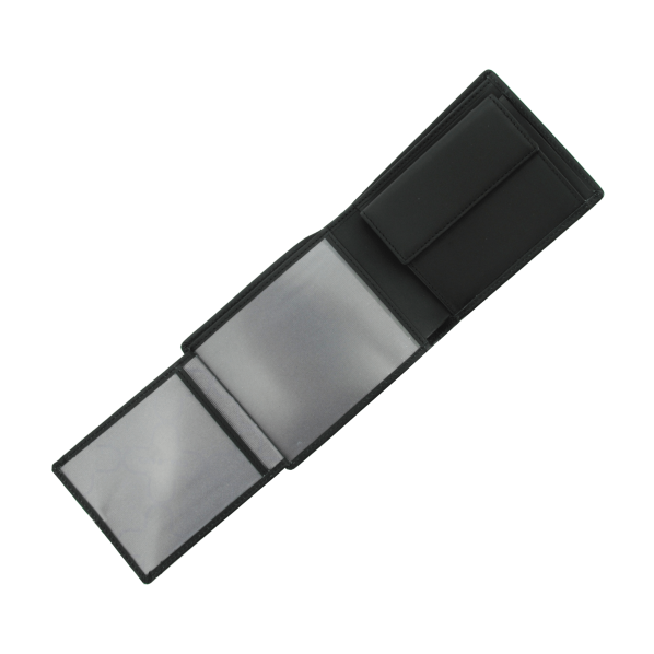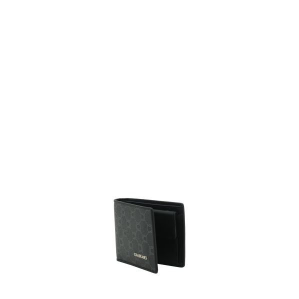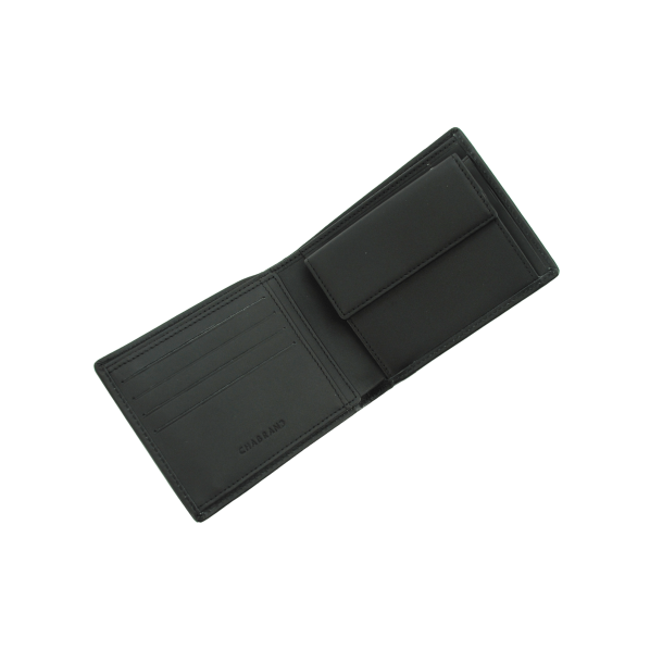 Portefeuille à l'italienne noir en toile enduite garnie cuir