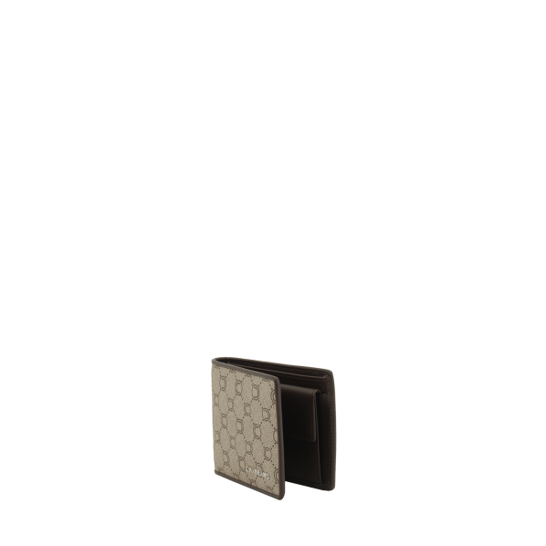 Portefeuille à l'italienne marron en toile enduite garnie cuir