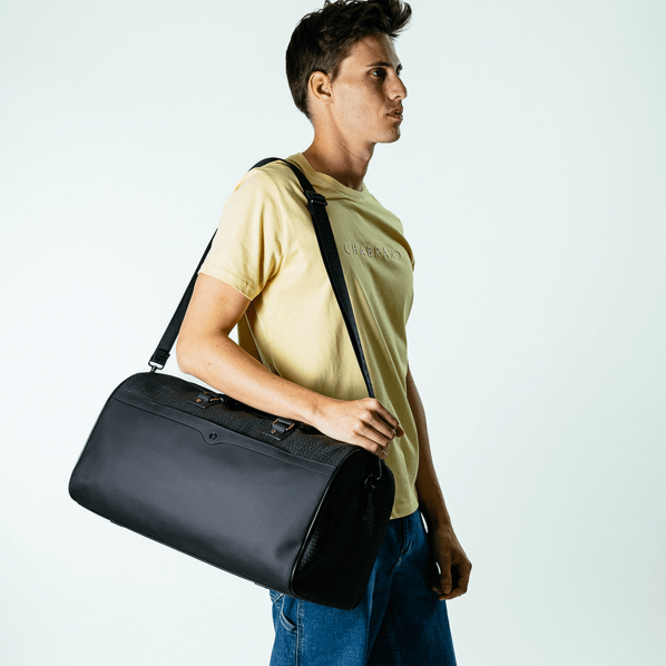 - Une poche plaquée fermée par bouton pression aimanté sur l'avant & une poche zippée sur l'arrière à l'extérieur