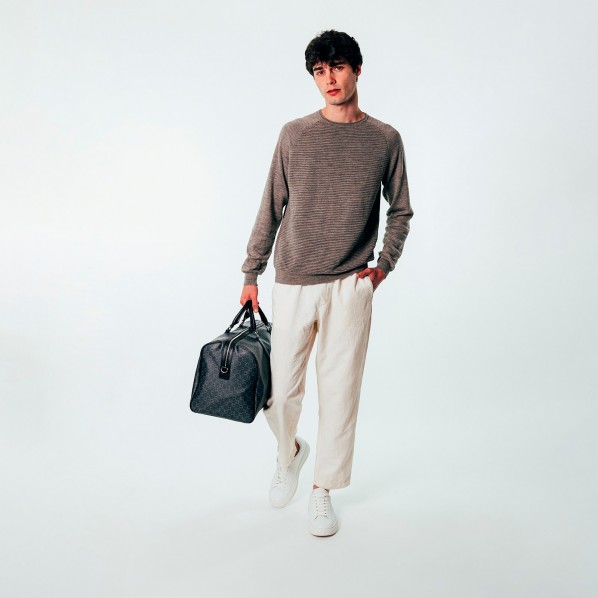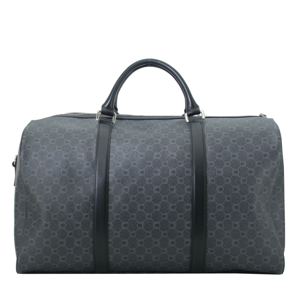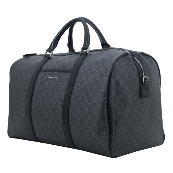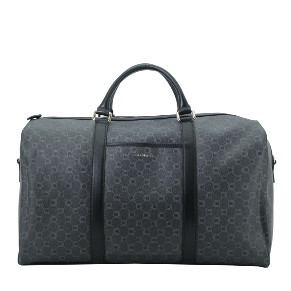 Sac de voyage noir en toile enduite siglée garnie cuir