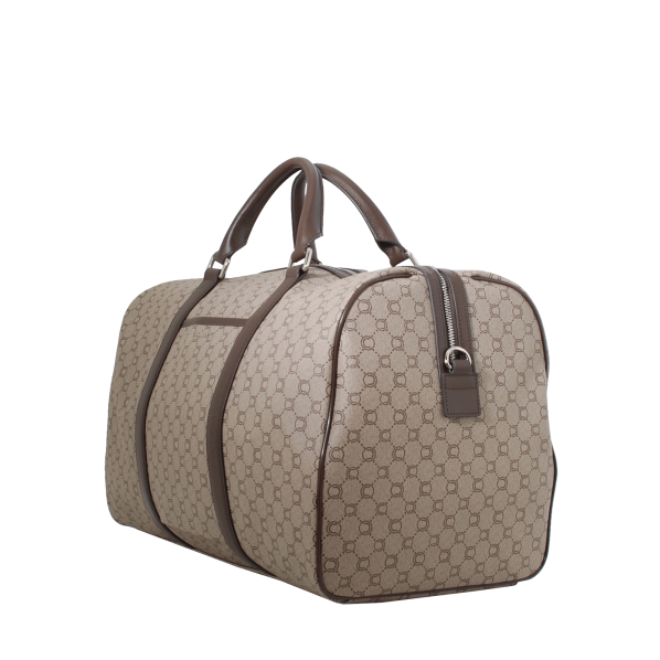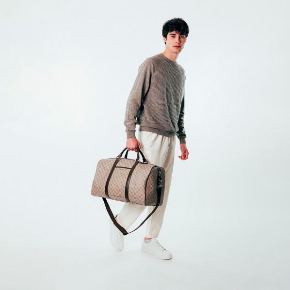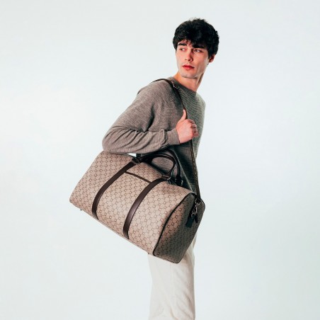 Sac de voyage marron en toile enduite siglée garnie cuir