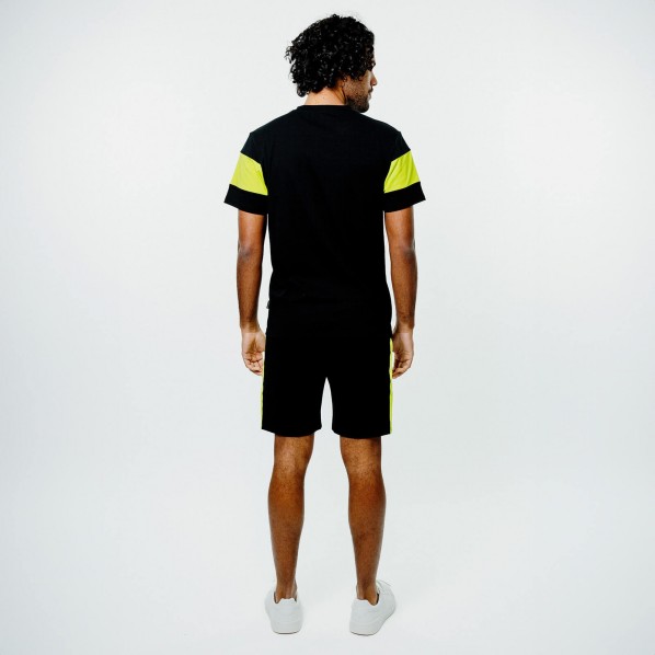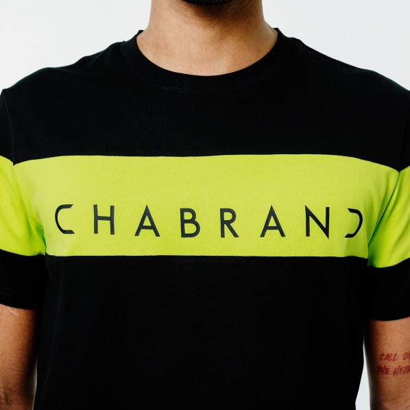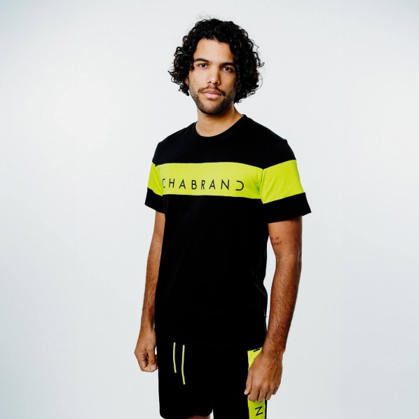 T-shirt bicolore noir et jaune en coton