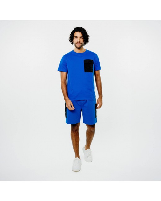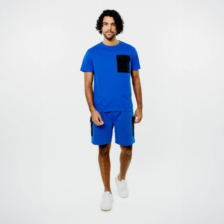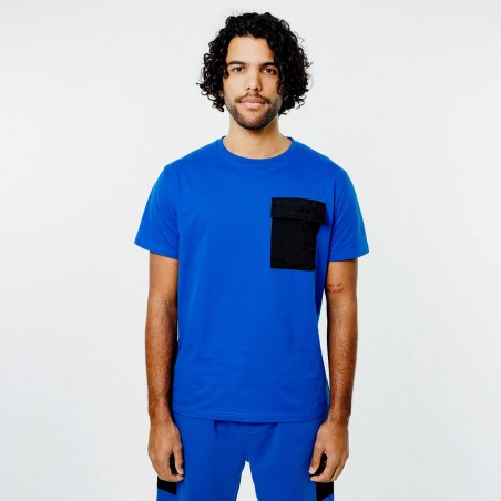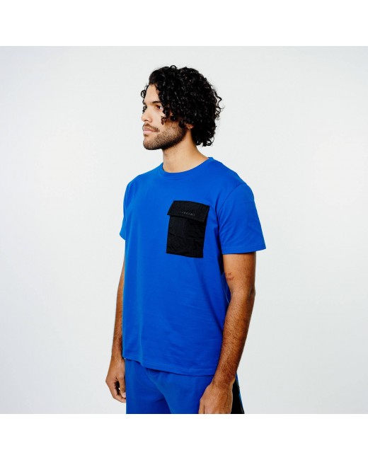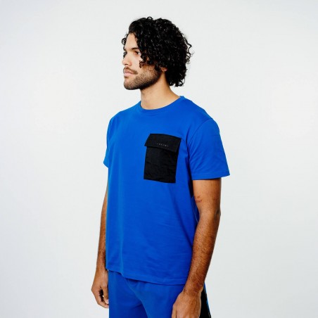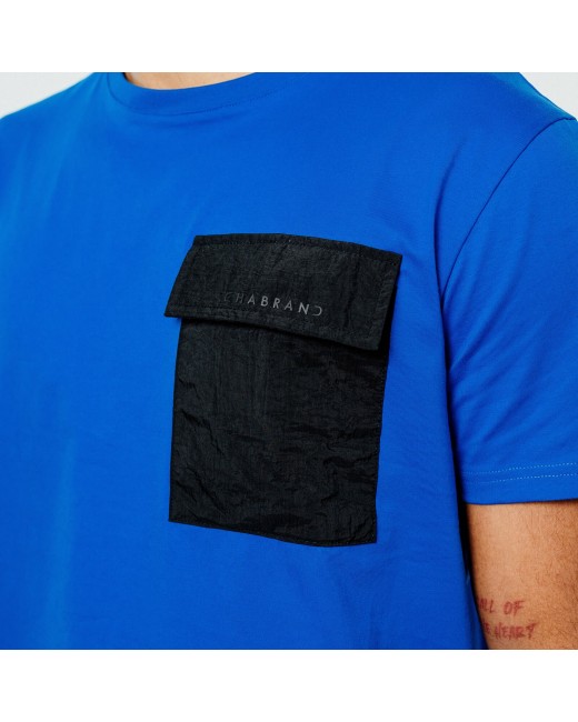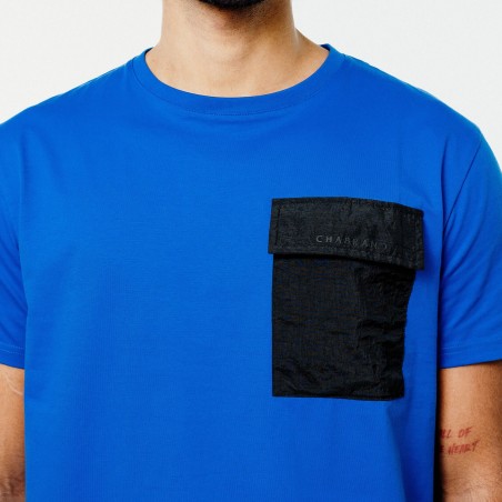 T-shirt bleu en coton avec une poche