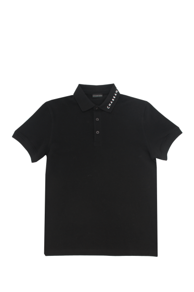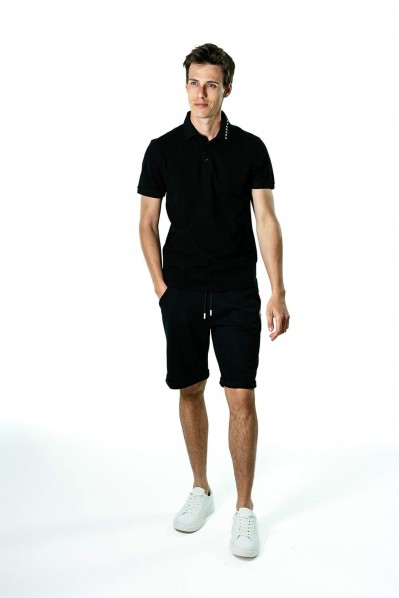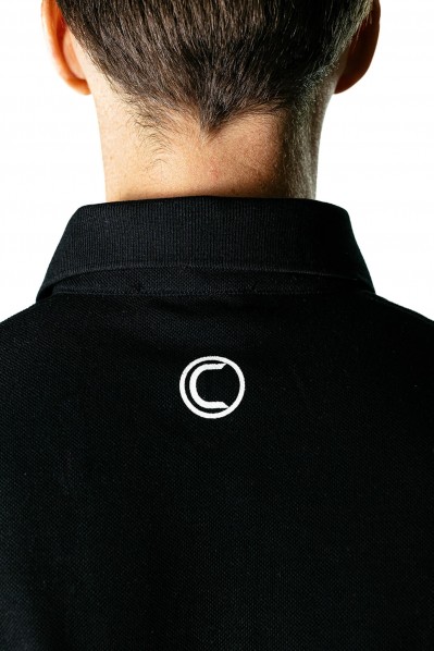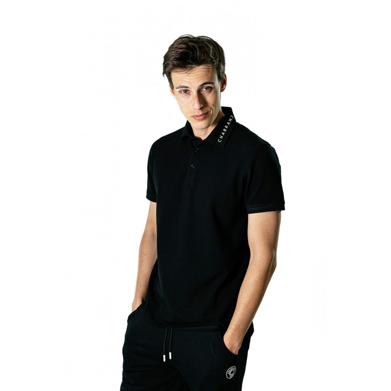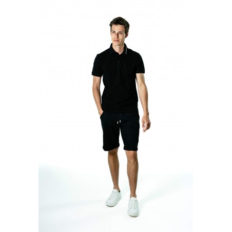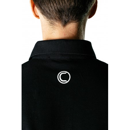 Polo manches courtes noir avec logo blanc sur le col