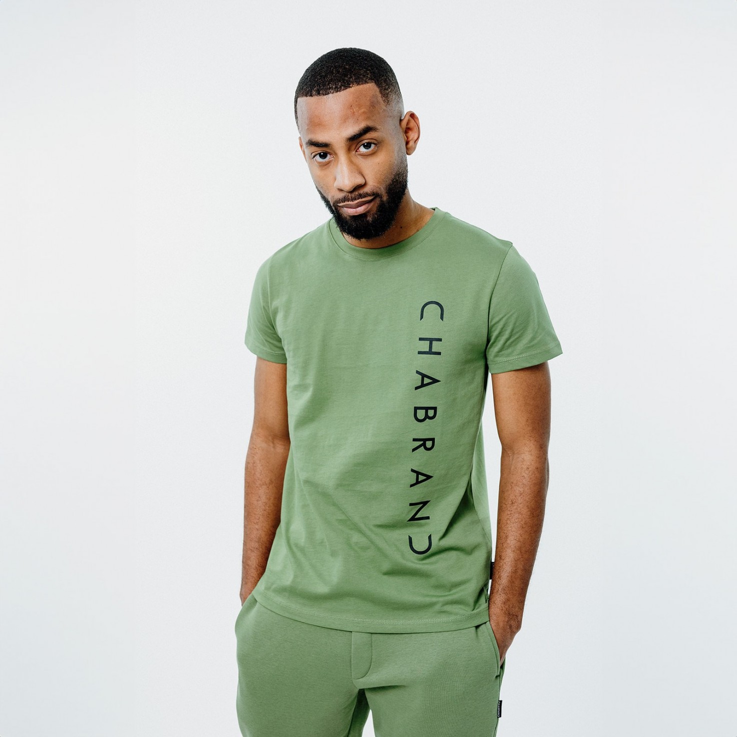 T-shirt kaki en coton avec logo vertical
